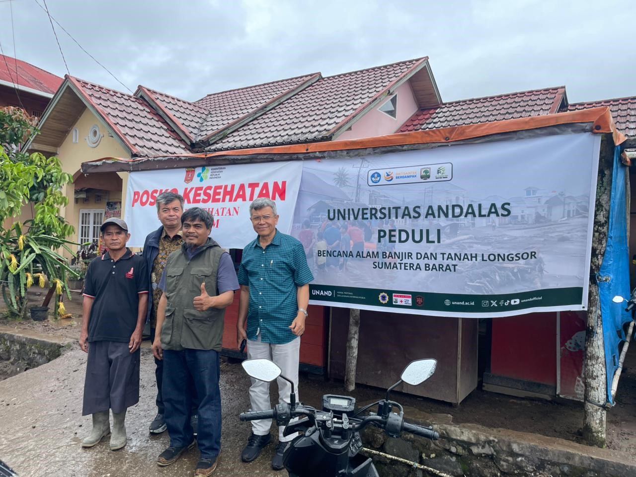 Pada tanggal 12 Maret 2024, Rektor Universitas Andalas Dr. Efa Yonnedi, SE. menugaskan tim Pusat Studi Bencana Unand atas nama : Prof. Dr.Eng Fauzan, S.T.,M.Sc.Eng, Prof. Ir Abdul Hakam, M.T., P.hD, dan Prof. Dr. Eng. Ir. Febrin Anas Ismail, M.T, beserta dua orang mahasiswa dari UKM Kosbema Unand atas nama : Amanda Nurra Mulyana (Fakultas ISIP) dan Nila Sari (Fakultas Teknologi Pertanian) untuk melakukan kegiatan solidaritas untuk korban bencana banjir dan longsor di Kabupaten Pesisir Selatan. Keberangkatan Tim Tanggap Bencana Banjir Pesisir Selatan dilepas langsung oleh Rektor Universitas Andalas,