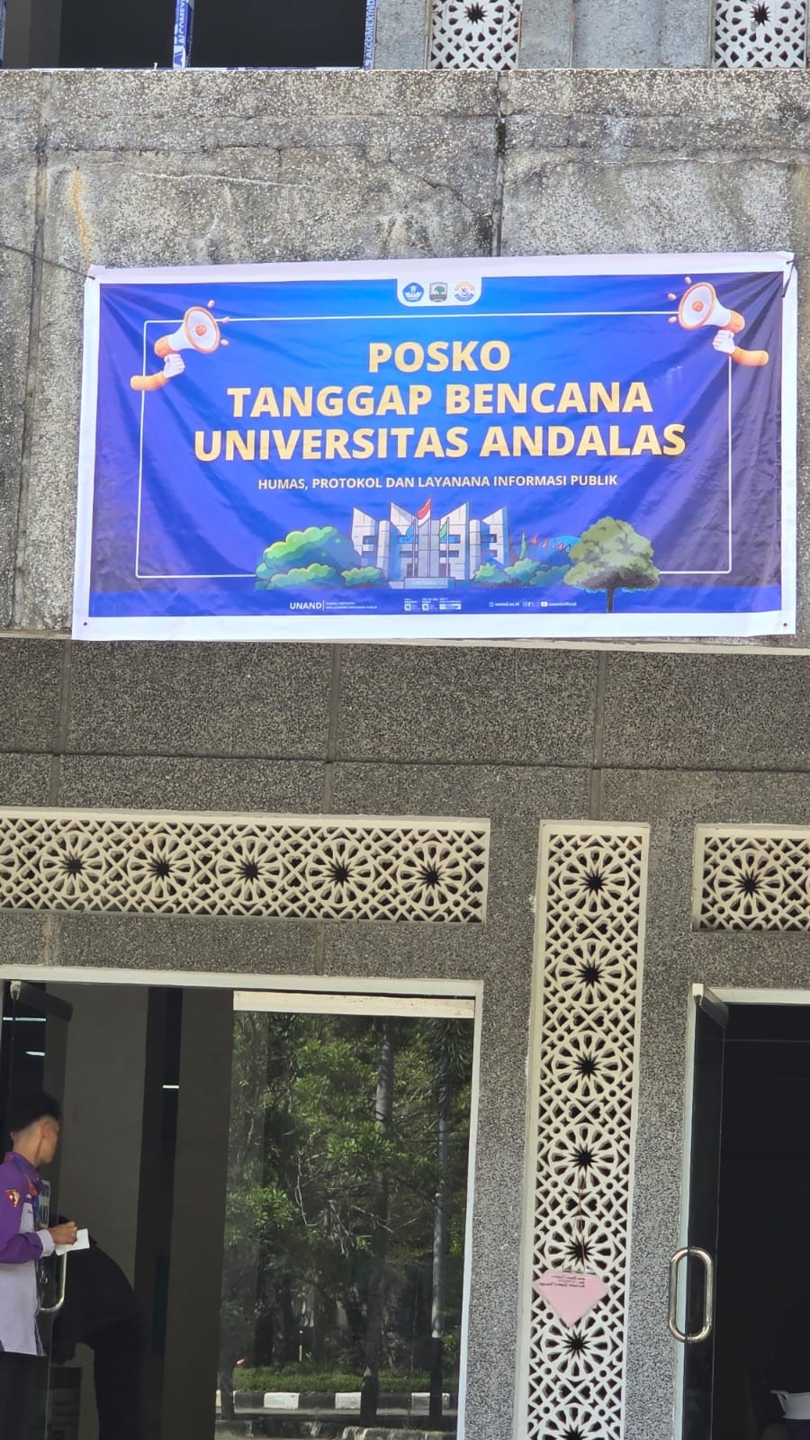 Sebagai bagian dari respons tanggap darurat, Universitas Andalas melalui Tim Tanggap Bencana Universitas Andalas (Gambar 32) bersama Pusat Studi Bencana turut menyediakan dan mengoperasikan posko tanggap darurat yang berlokasi di Masjid Nurul Ilmi. Posko ini berfungsi sebagai pusat koordinasi bantuan kemanusiaan, distribusi logistik, serta tempat pelayanan awal bagi masyarakat terdampak banjir bandang. Keberadaan posko tersebut memudahkan koordinasi antara relawan, akademisi, dan pihak terkait lainnya, sekaligus menjadi simpul informasi dalam mendukung kelancaran penanganan darurat di lapangan.
